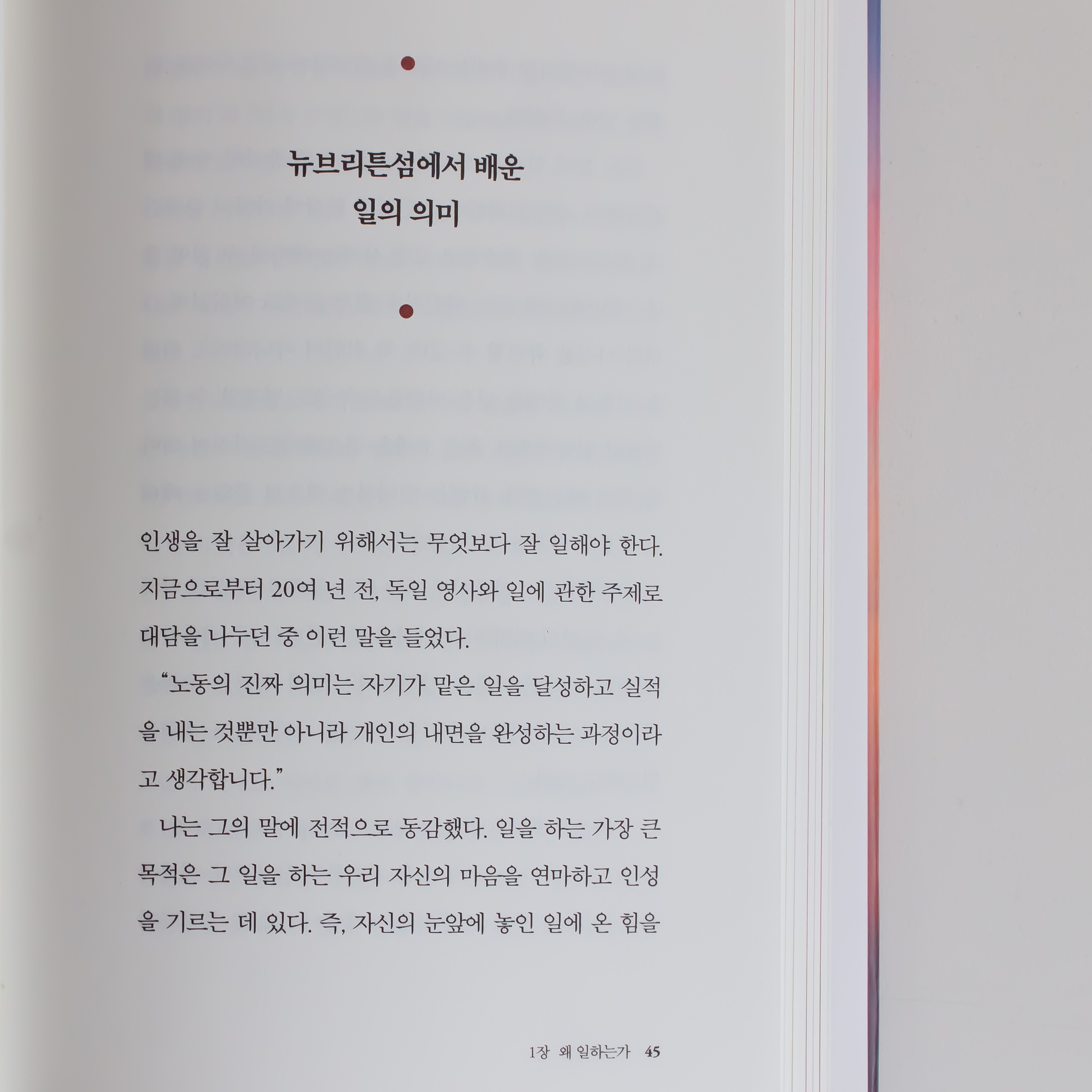 "노동의 진짜 의미는 자기가 맡은 일을 달성하고 실적을 내는 것 뿐만 아니라 개인의 내면을 완성하는 과정이라고 생각합니다." 45쪽