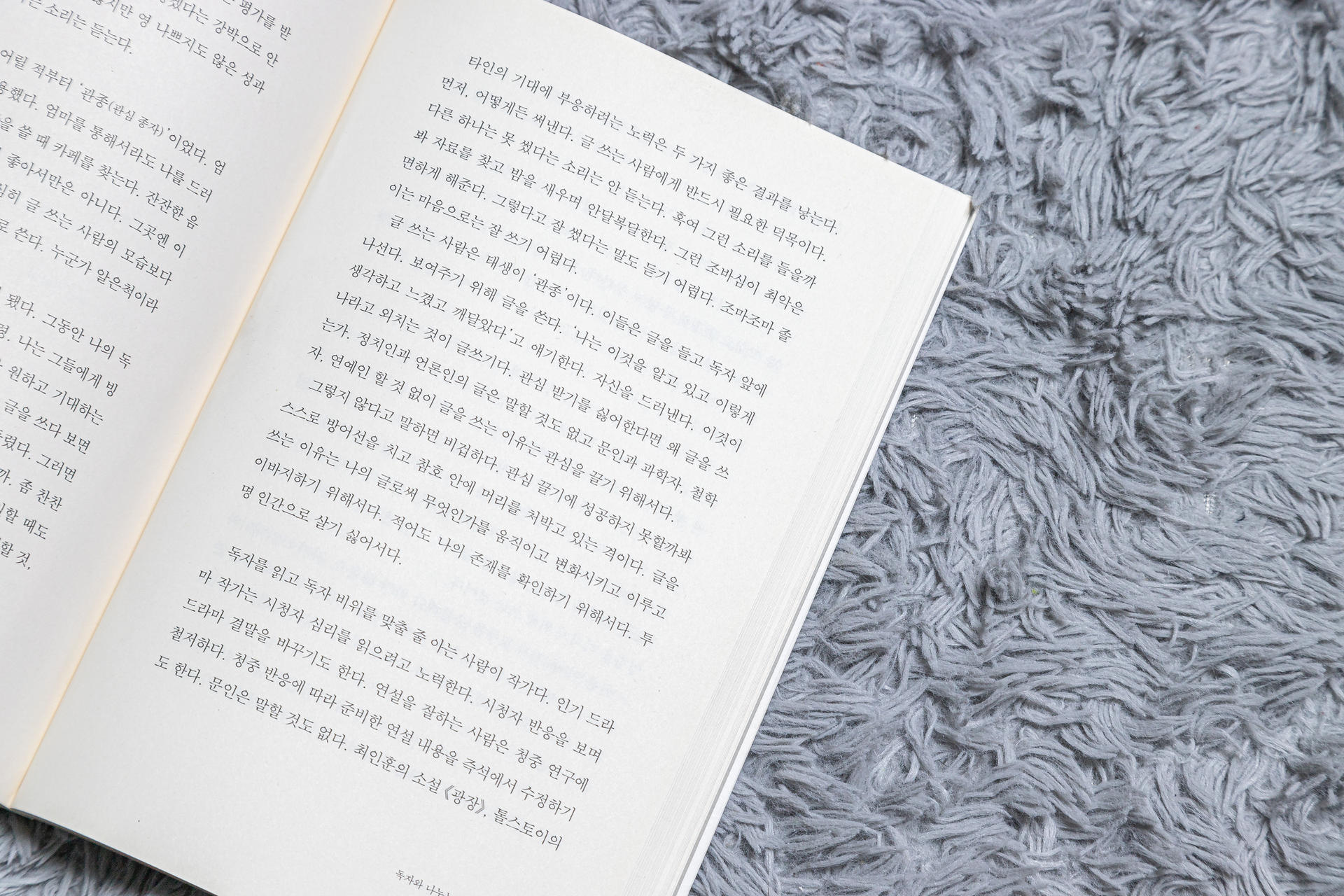 글 쓰는 사람은 태생이 '관종'이다. 이들은 글을 들고 독자 앞에 나선다. 보여주기 위해 글을 쓴다. '나는 이것을 알고 있고 이렇게 생각하고 느꼈고 깨달았다'고 얘기한다. 자신을 드러낸다. 이것이 나라고 외치는 글쓰기다. (중략) 글을 쓰는 이유는 관심을 끌기 위해서다. 그렇지 않다고 말하면 비겁하다. 285쪽